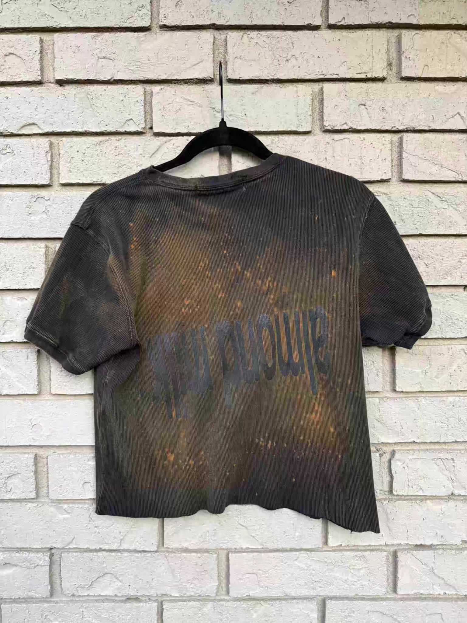 dude this piece feels sooooo good ; soft n vintage black worn ;; the bleach fade i put on hits subtle n good ya